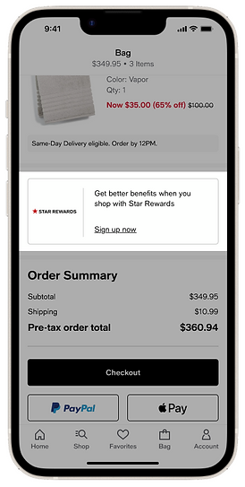 A convenient and frictionless experience was designed to boost enrollment in Macy's loyalty program—Star Rewards. The experience utilizes micro animations to offer instant feedback and to celebrate the customer as they begin their new loyalty journey.